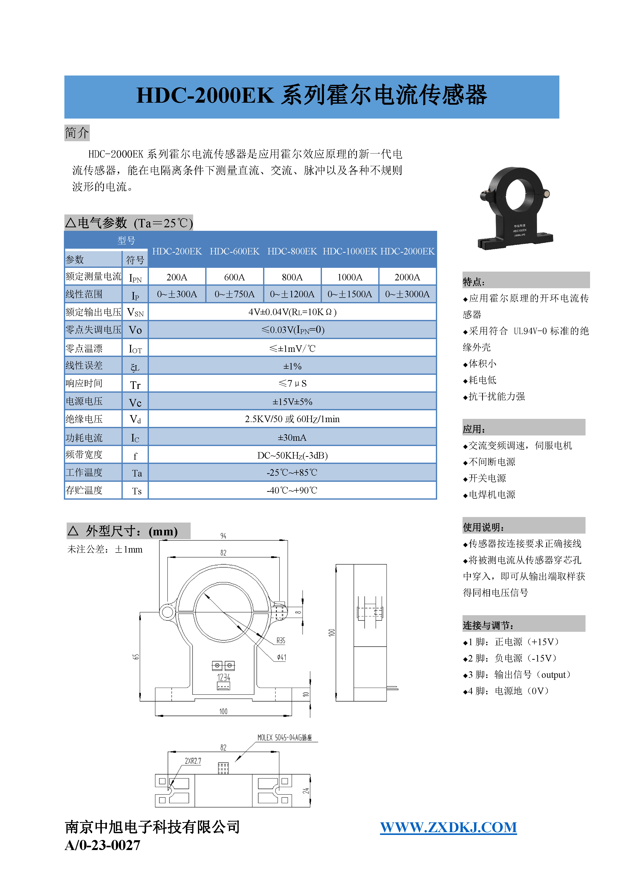 HDC-1000EK系列霍爾電流傳感器是應用霍爾效應原理的新一代電流傳感器,能在電隔離條件下測量直流、交流、脈沖以及各種不規(guī)則波形的電流。