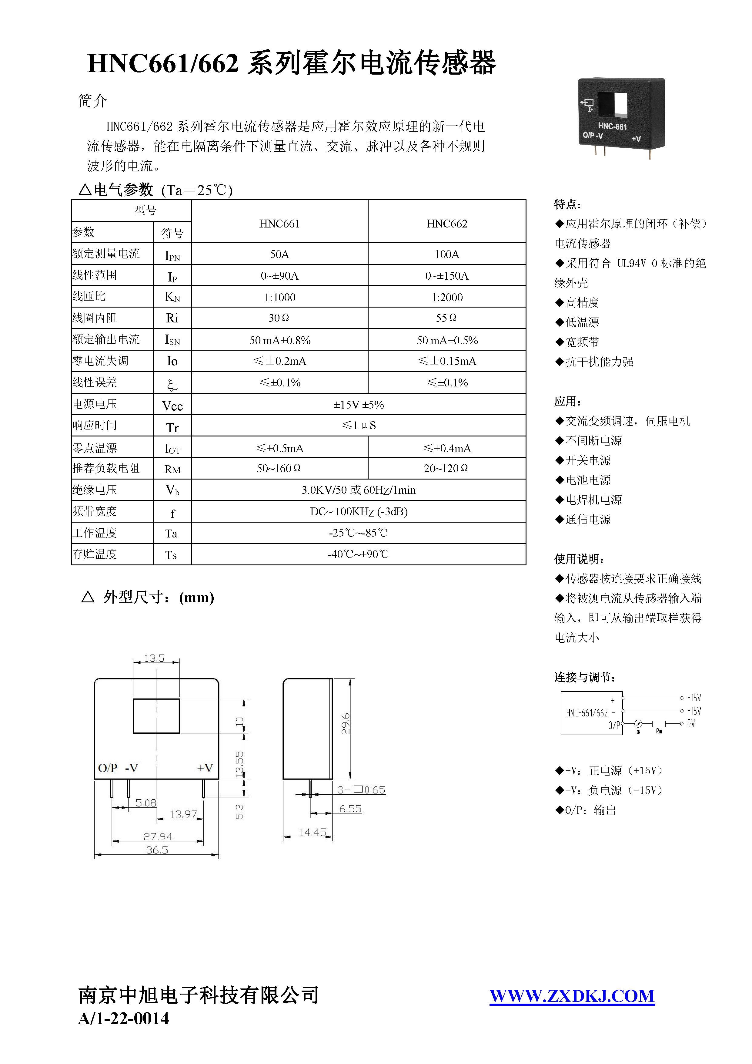 HNC-661系列霍爾電流傳感器是應用霍爾效應原理的新一代電流傳感器,能在電隔離條件下測量直流、交流、脈沖以及各種不規則波形的電流。