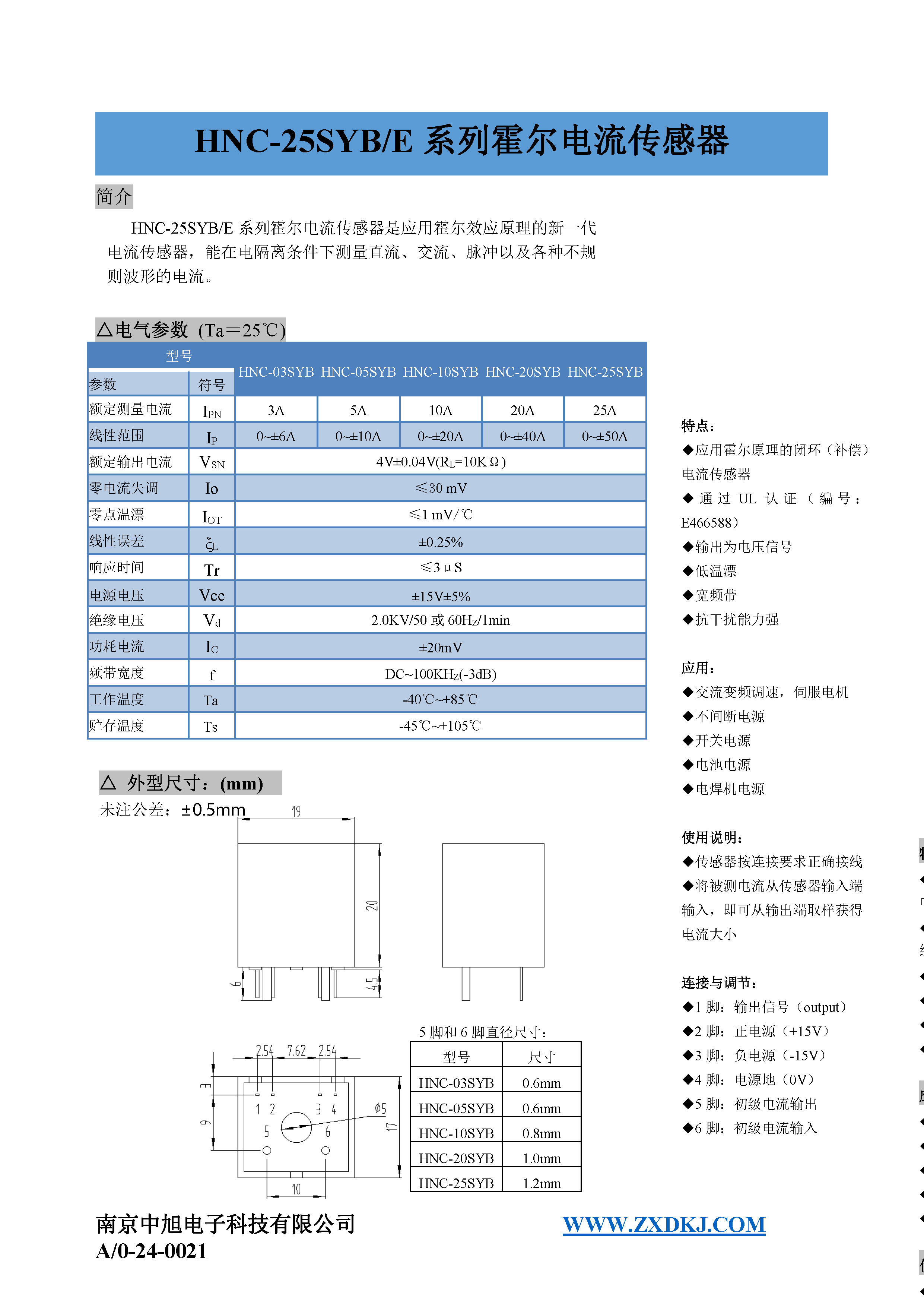 HNC-25SYB系列霍爾電流傳感器是應用霍爾效應原理的新一代電流傳感器,能在電隔離條件下測量直流、交流、脈沖以及各種不規則波形的電流。